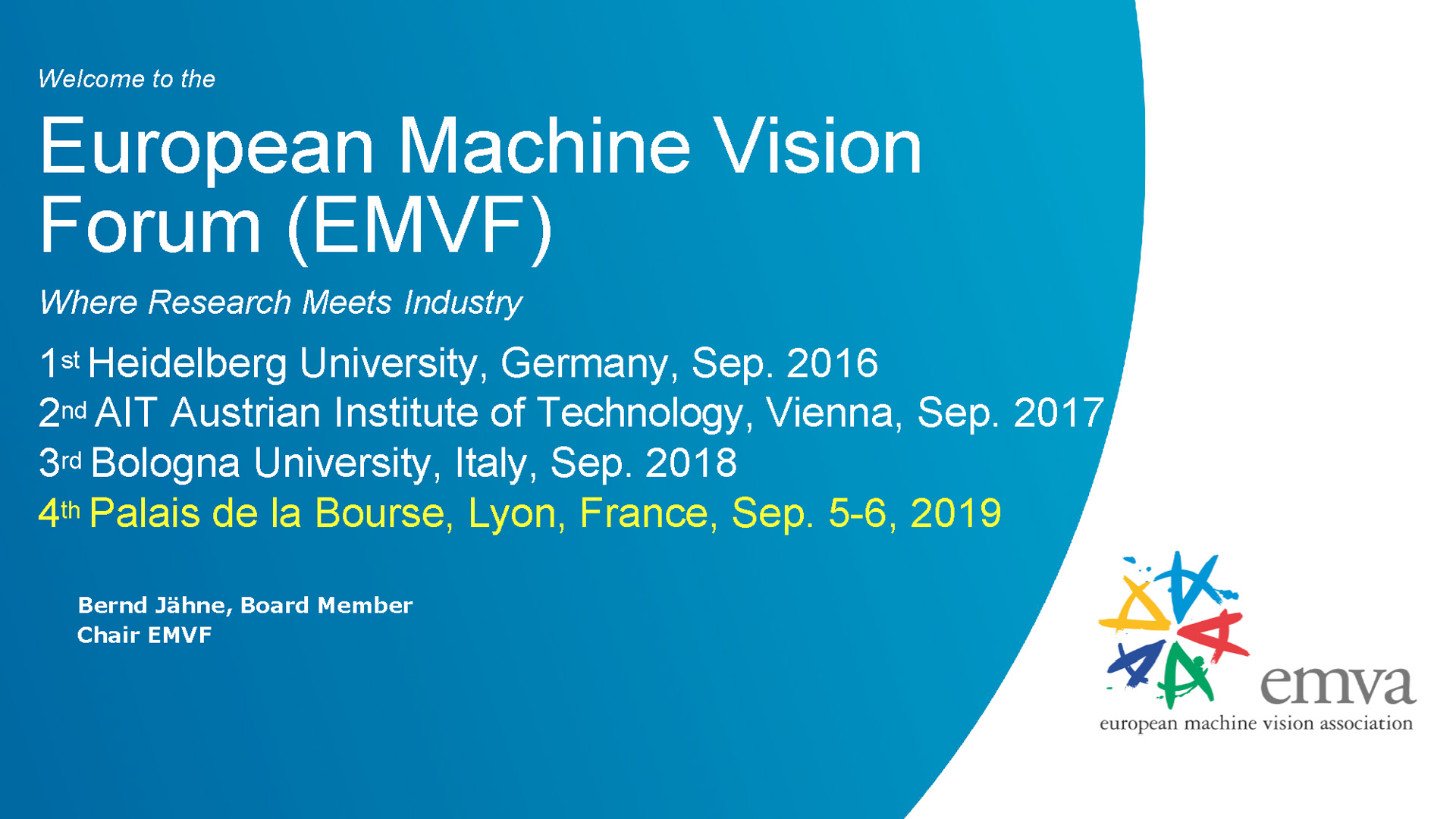 Bernd Jähne - Announcement of Location and Focal Topic of the 5th European Machine Vision Forum / Farewell